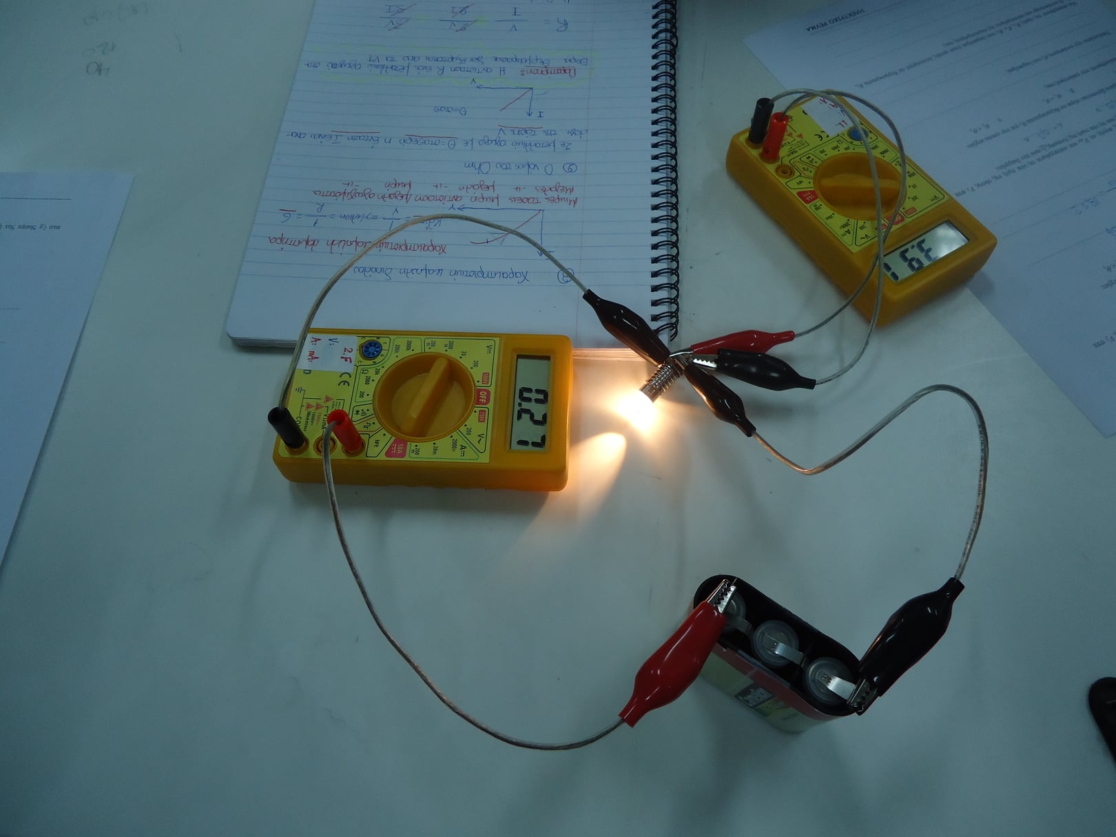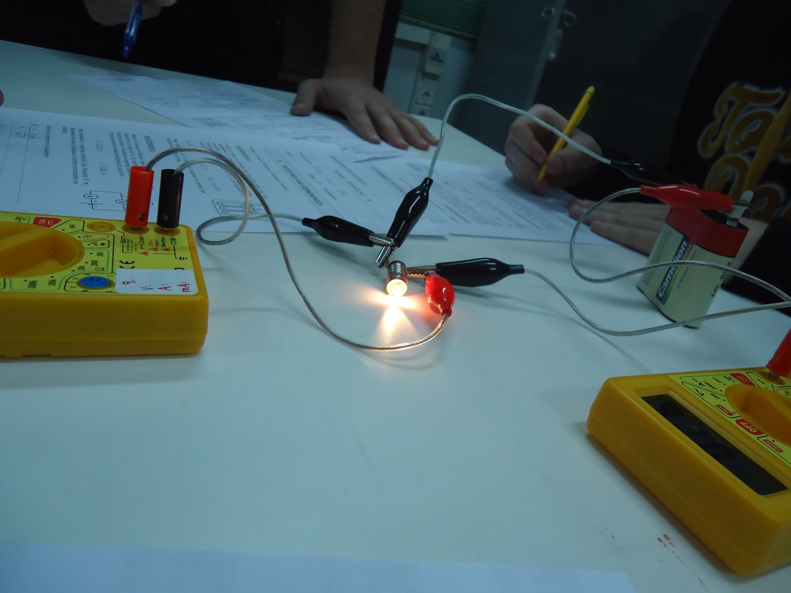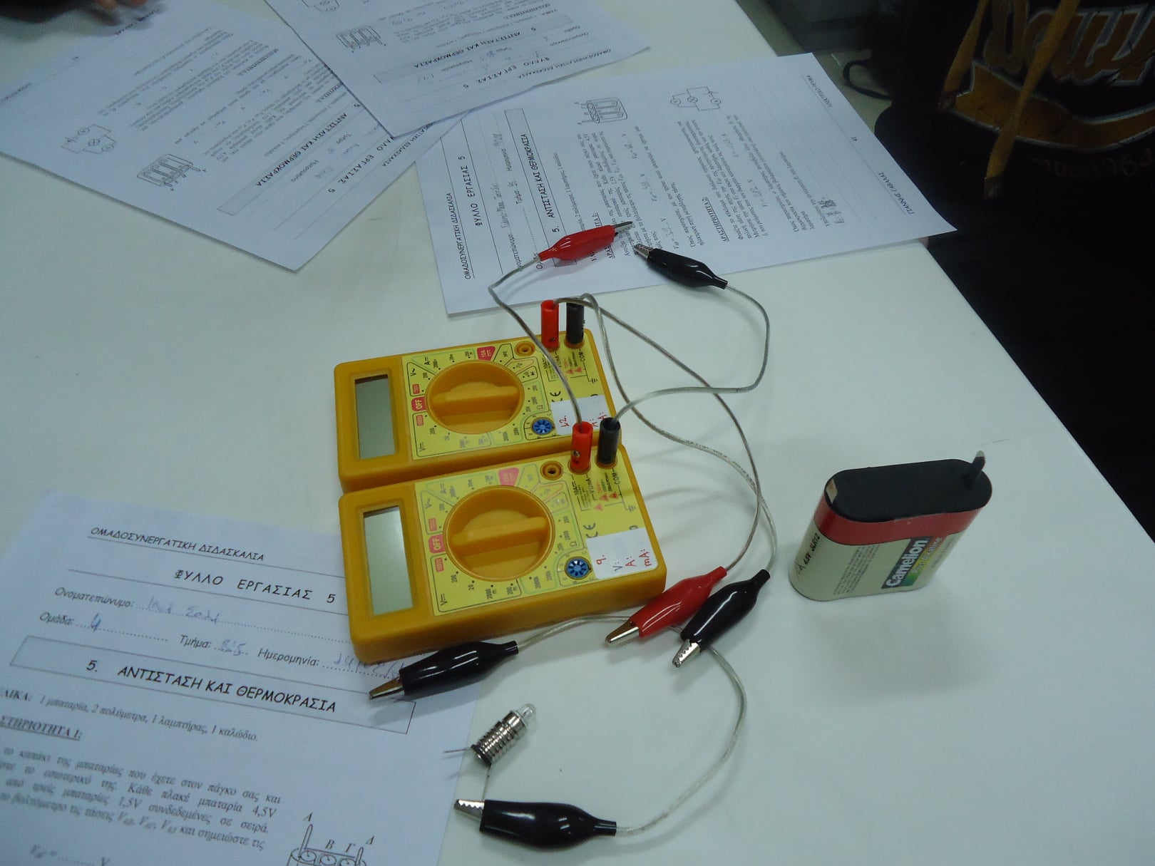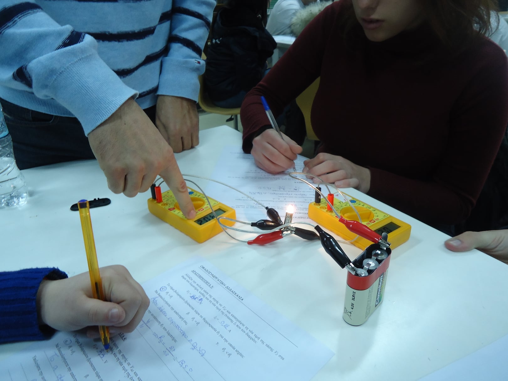 Για κάθε κύκλωμα που κατασκευάζουν οι μαθητές, μετρούν την τιμή της τάσης στα άκρα του λαμπτήρα, καθώς και την ένταση του ηλεκτρικού ρεύματος που τον διαρρέει:
