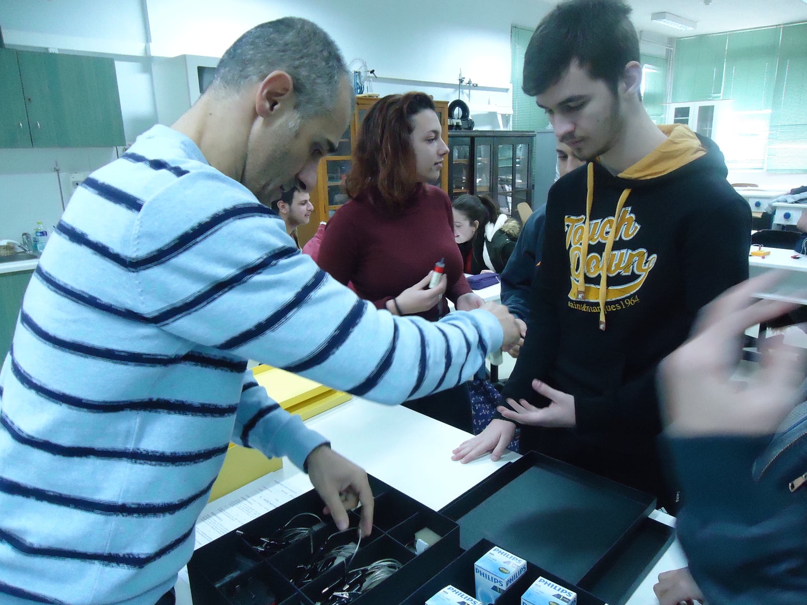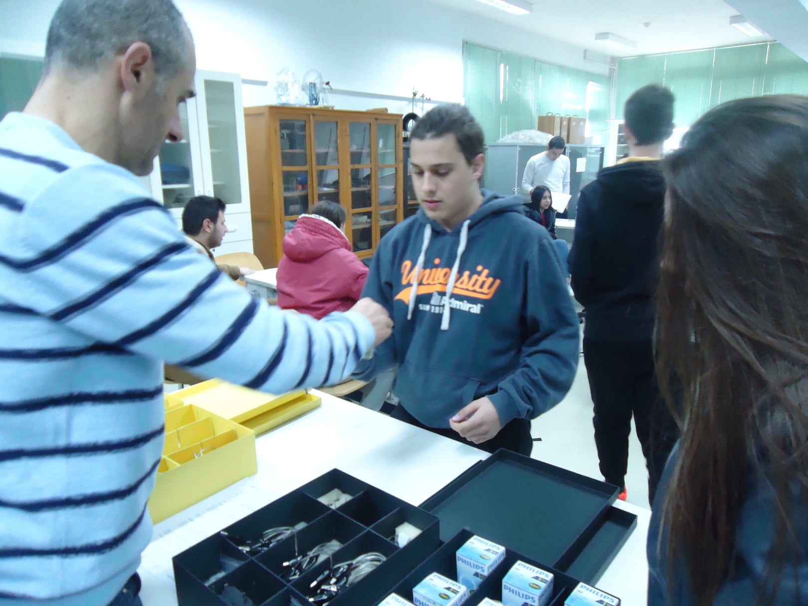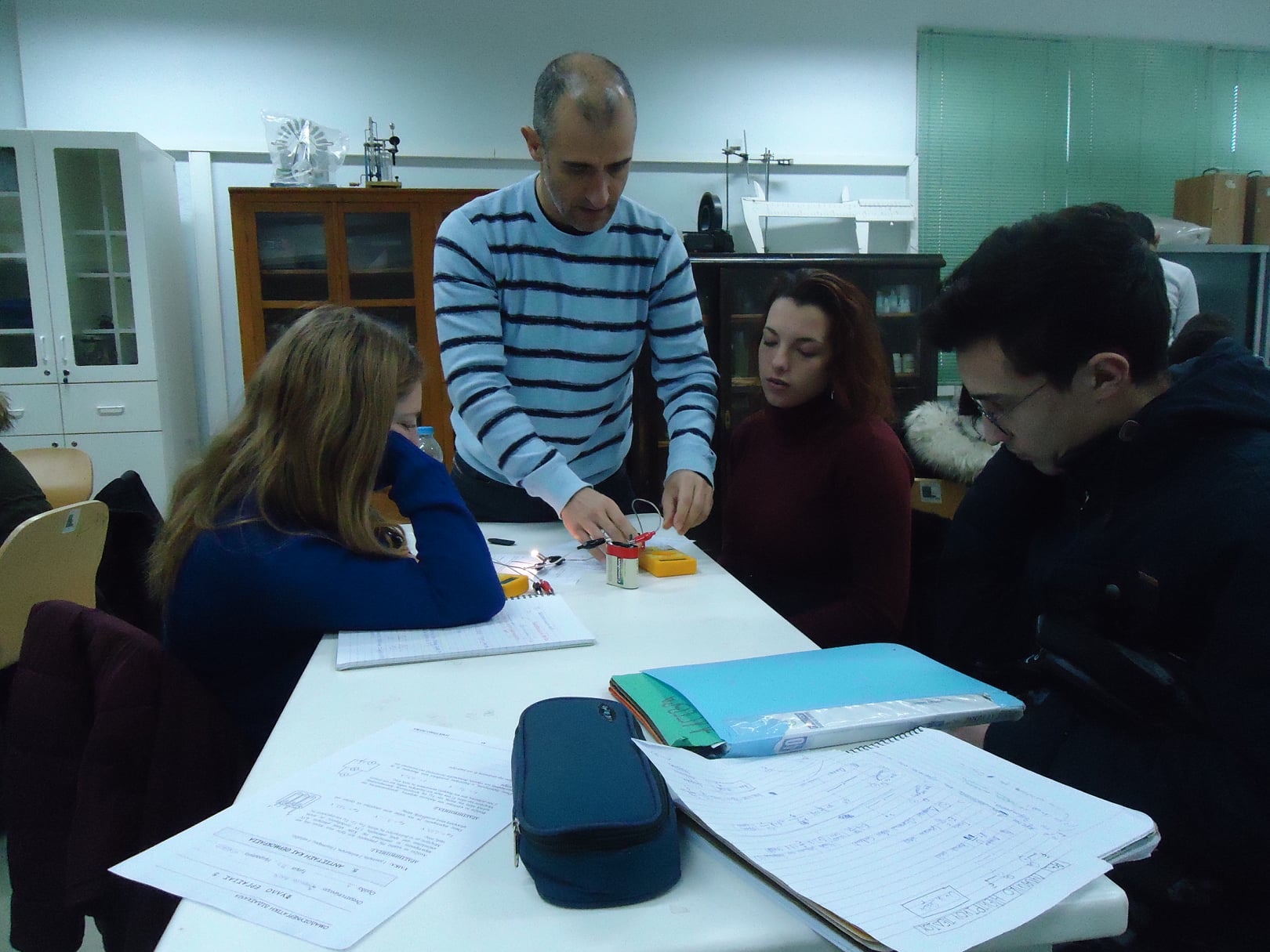 Οι μαθητές της Β΄ τάξης του 1ου Γενικού Λυκείου Κομοτηνής εργάζονται σε ομάδες στο Εργαστήριο Φυσικών Επιστημών και με τη βοήθεια φύλλων εργασίας μελετούν την εξάρτηση της ηλεκτρικής αντίστασης ενός μεταλλικού αγωγού από τη θερμοκρασία: